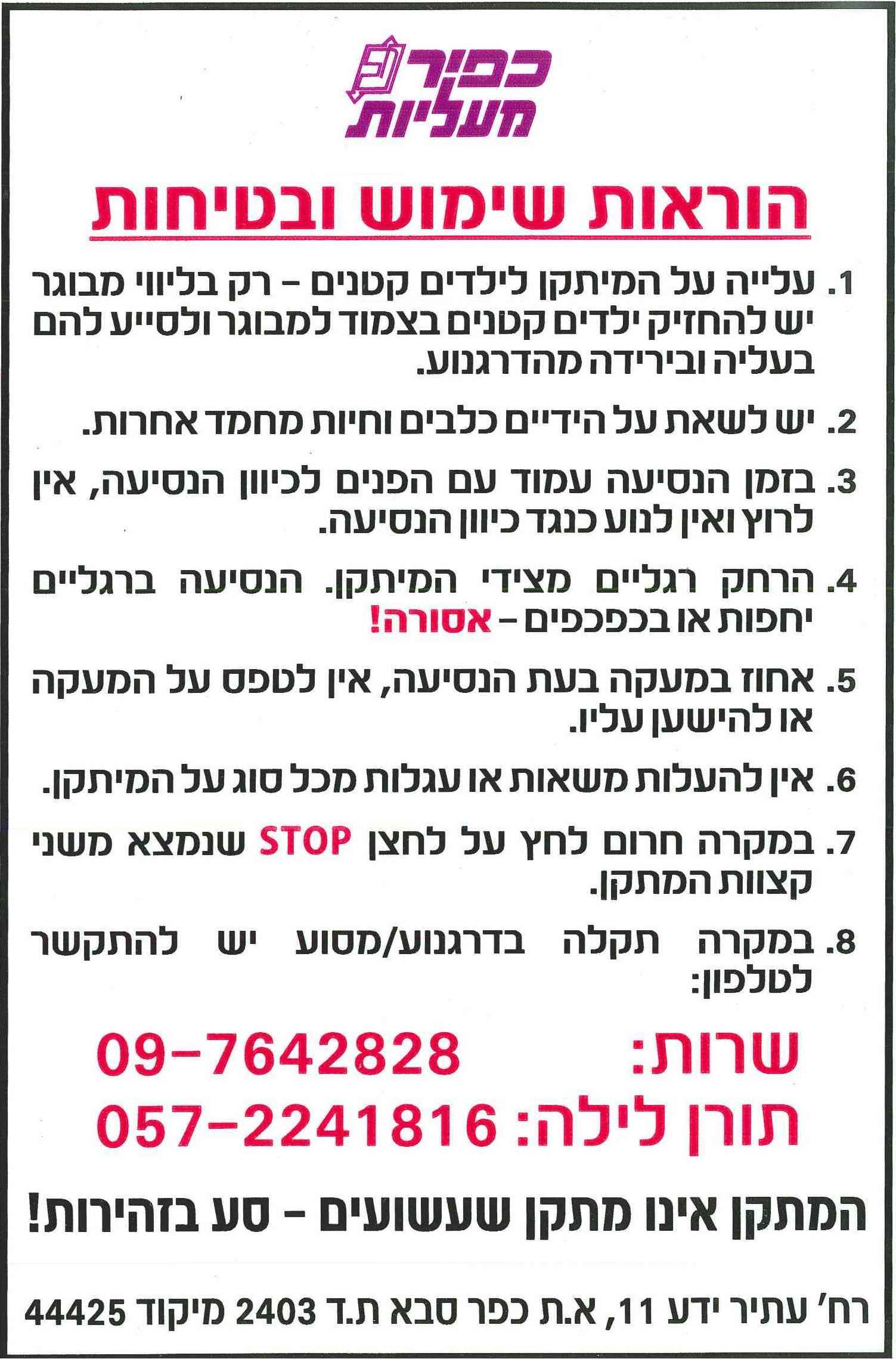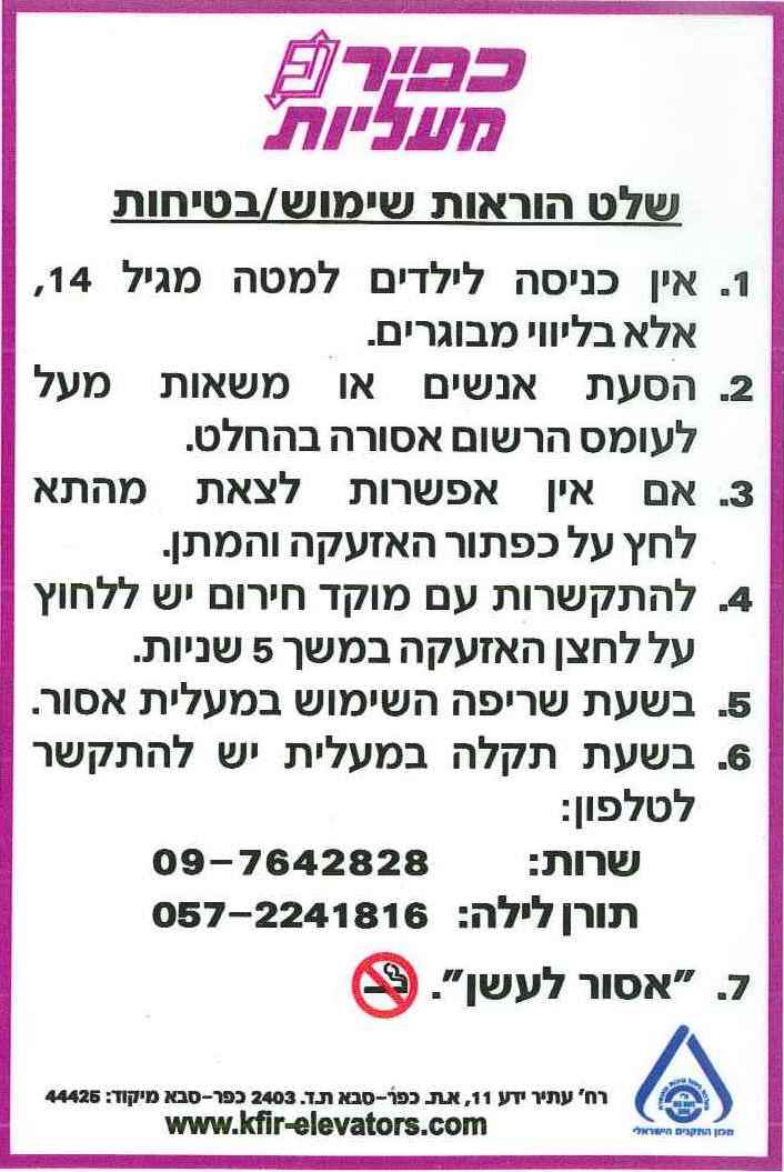 הוראות שימוש ובטיחות- מעליות